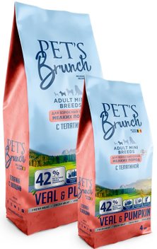 Сухой корм для собак Pet's Brunch для взрослых собак миниатюрных пород с телятиной 4 кг
