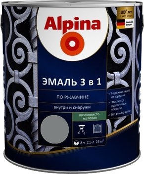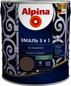 Эмаль Alpina По ржавчине 3 в 1 RAL8017 2.5 л (шелковисто-матовый шоколадный)